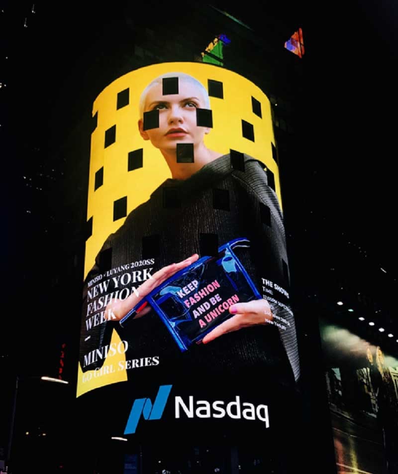 名創優品時尚街拍廣告登上紐約納斯達克大屏幕