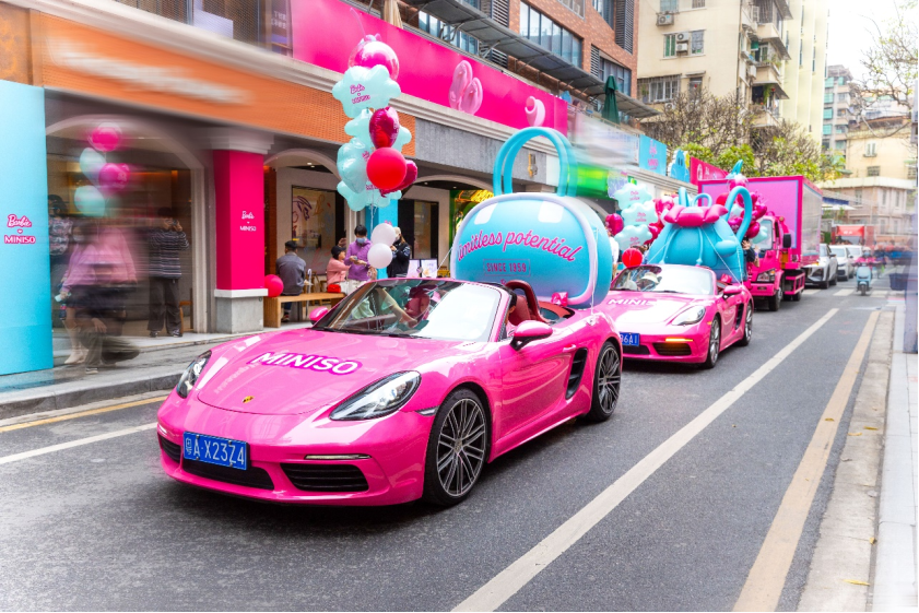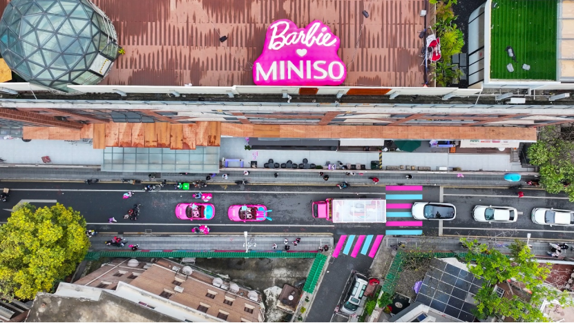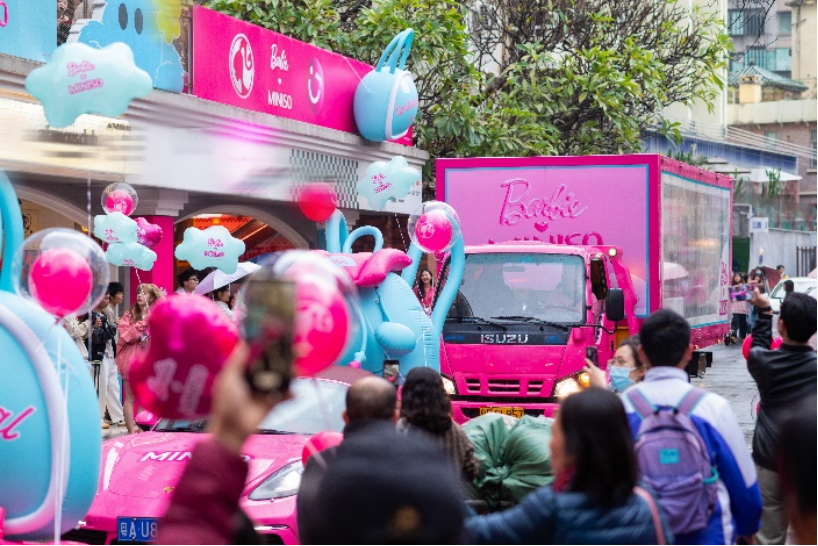適逢芭比 65 周年紀念日,名創優品以“姐姐妹妹粉上天”為主題,打造花車巡游的創意場景,將芭比粉的優雅與名創優品的時尚元素結合,借此鼓勵當代女性“You Can Be Anything“,鼓勵年輕一代自由追逐不同的事業與興趣,玩出無限可能。