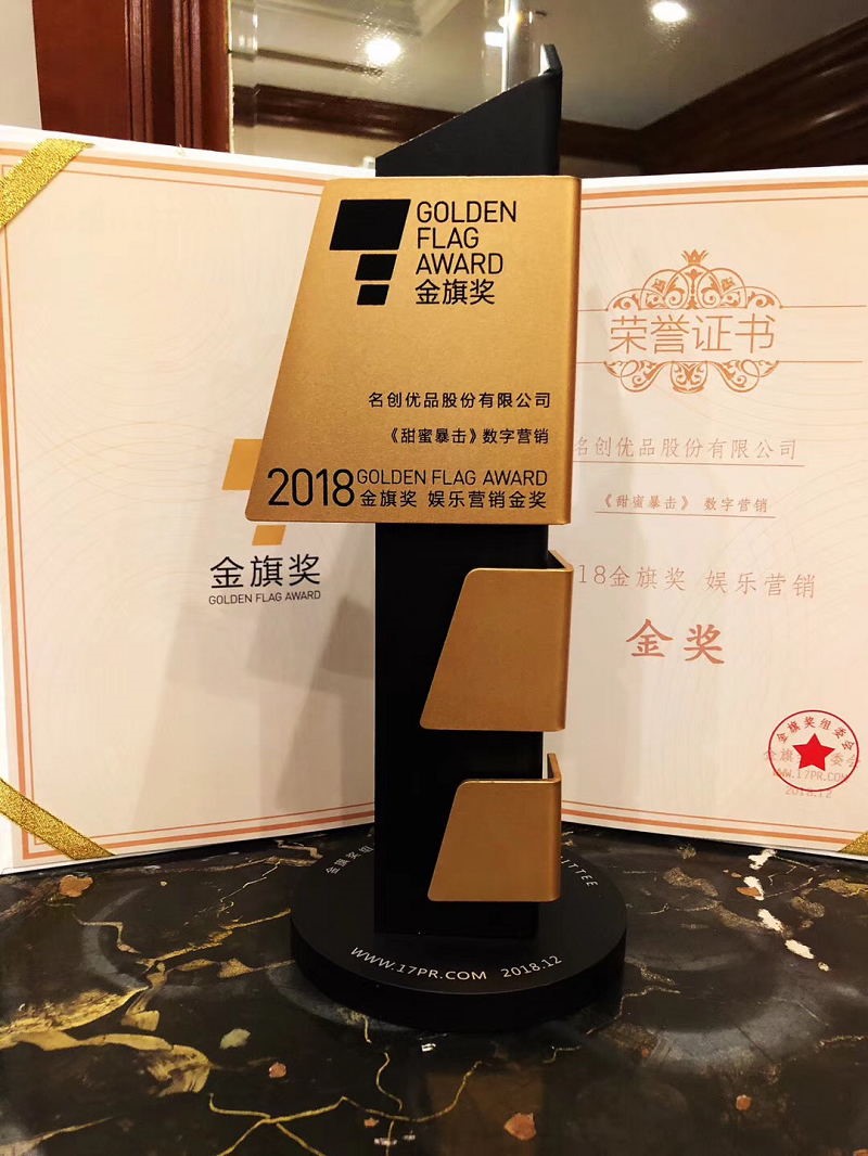 名創優品攜《甜蜜暴擊》斬獲2018金旗獎娛樂營銷金獎