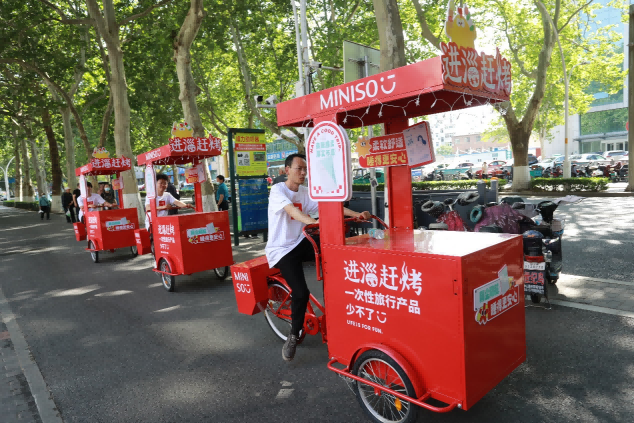 為了更好地融入各個消費場景,名創優品深入淄博打造多元化的線下互動玩法,借助多樣場景讓品牌與消費者零距離互動,利用旅行和燒烤離不開的一次性旅行產品不斷滲透至當地的旅游餐飲市場,在消費者心中樹立起“出來玩吃燒烤,名創優品一次性旅行產品少不了”的認知。