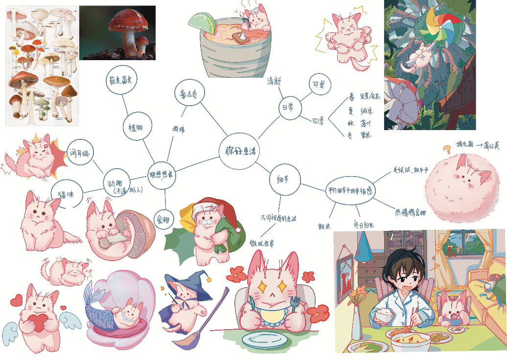中國美術學院插畫專業學生關于《你好,生活》主題發散思維導圖“我們的同學們作品中有很多可愛的想法,有許多他們這個年齡對未來的美好向往,能夠感受到同學們在真正關注社會,關注我們的生活。”指導老師楊毅弘說。對于美好生活,不同的同學也給出了不同的演繹。美好生活,也許是享受生活樂趣的過程,也許是創造個人價值與社會價值的過程。
