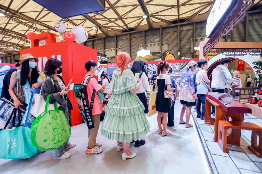 名創優品國漫IP展位里,許多觀展者排隊參與互動本次展會上,名創優品聚焦Z世代,貼合時下火熱的國漫,攜手非人哉、狐妖小紅娘、魔道祖師動畫、一人之下四大人氣國漫IP,打造了一場專屬的國漫IP沉浸式互動體驗,打破次元壁,塑造趣味互動環節的同時,更是第一時間將國漫IP聯名好物帶給更多粉絲群體。