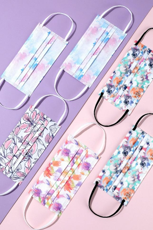 名創優品水彩設計款成人平面一次性口罩
